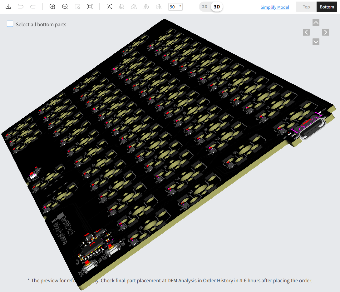 ここでは基板が3D表示されていてぐるぐる回せる。USBコネクタがミッドマウントになっていることも確認できる。