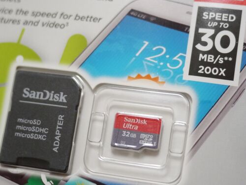 SanDiskの32GBのmicroSDカードを買ってきた。約2,300円。デジカメで使う。CLASS10でも実際の転送速度が遅いとフルHDの動画(約20Mbps)の書き込みに失敗することがわかったので、転送速度が30Mbpsとうたっているこれにした。パッケージを裏返すと切り取り線…