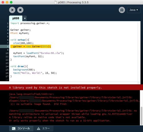 00:04:21 今日のGainer mini:Processing1.5.1は必要なJavaが「1.5+」で1.8が入ってるはずなのに.app内のJavaApplicationStubを直接叩くと「(null)」なのでダメと言われちゃう。3.3.5のエラーは原因不明のまま #電子工作悪戦苦闘 https://pic.twitter.com/p…