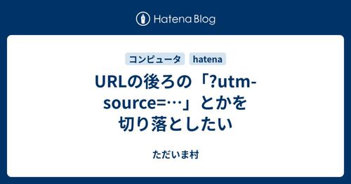 はてなブログの更新通知メールからブログに飛ぶと、URLの後ろにクエリがついてくる。「?utm_source=subscription_mail&utm_medium=email&utm_campaign=subscription」というもの。長い。そしてこのままだとブクマ数やブクマコメントを正しく取得できない。な…