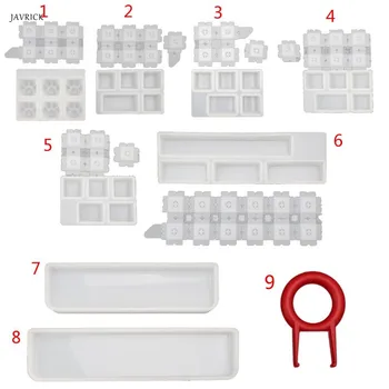 These keyboard molds are consisting of key cap mold and key cap cover mold, you can cut out key cap cover mold by scissors on DIY projects, it will be more convenient.- これらのキーの型は、キーキャップの型とキーキャップカバーの型(訳注:以下「軸の型」)から成ります。キーキャップのDIYでは、軸の型をハサミで切り取るとより便利です。