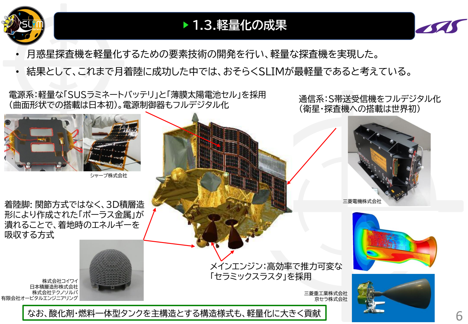 國中:SLIMは軽量化に特化した設計をしている。構造体を使わずタンク自体を構造体として用いそこに各装置を取り付ける方式など。ひっくり返っても構造を保てたということは評価してほしい。