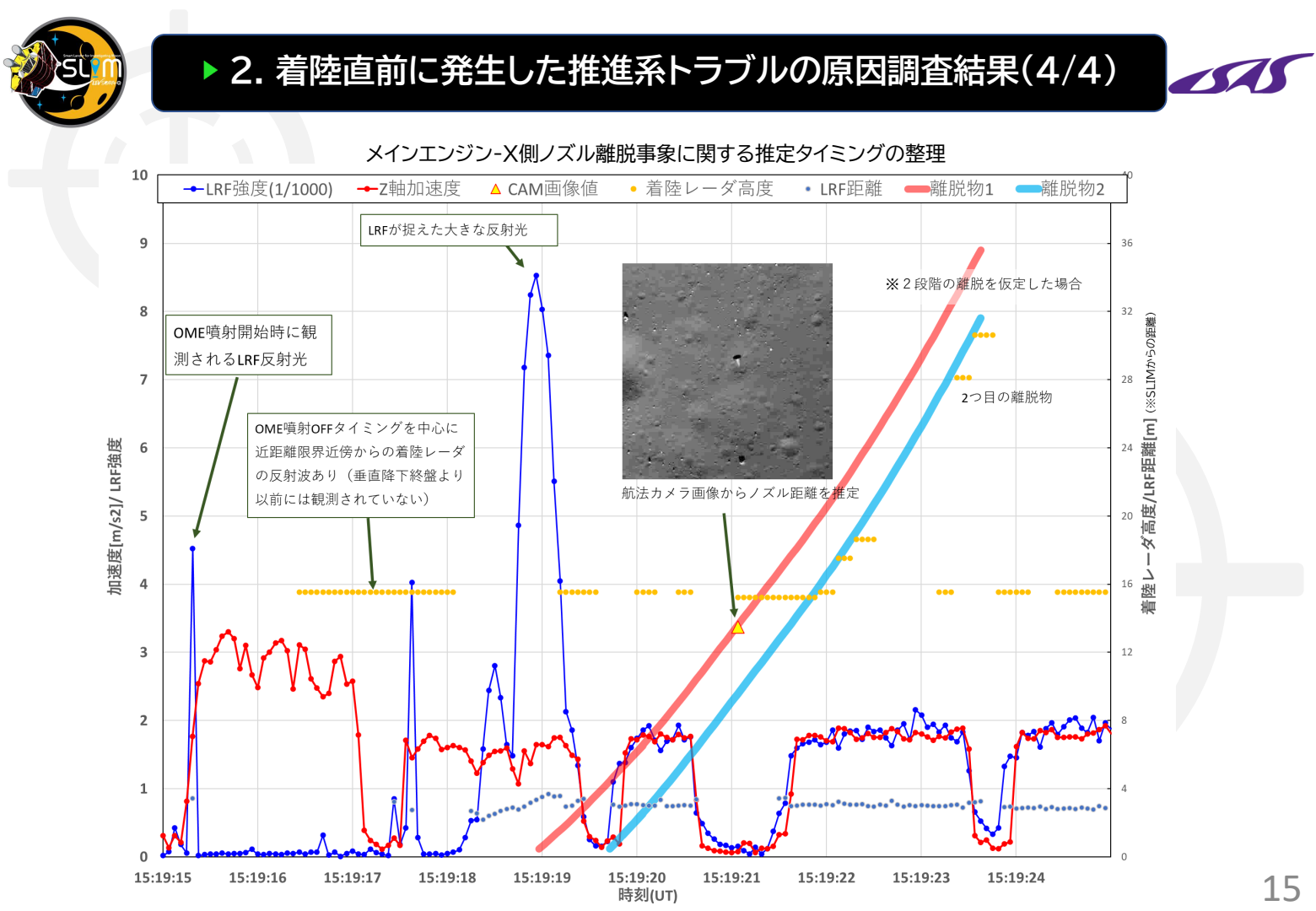 ひらた:資料15ページ、「LRFがとらえた大きな反射光」とあり、これは強い光が当たっていると思うが問題のスラスタからの噴射光か